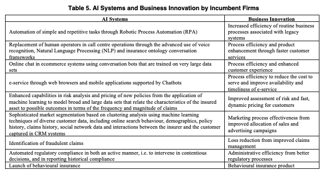 Holland, Christopher, and Anil Kavuri. "Artificial intelligence (AI) and business innovation in insurance: A comparison of incumbent firms versus new entrants." (2023).